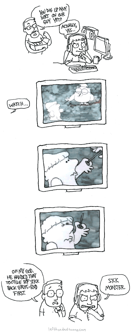 oh my god. he handed that tootsie pop stick back gross-end first.